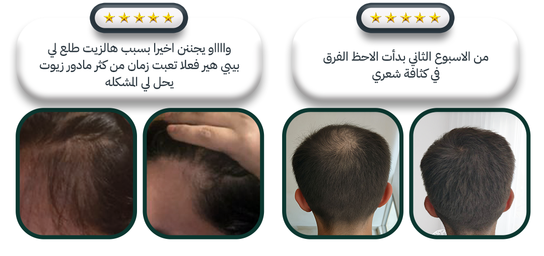 🔸 طبيعي ( 14 مكون طبيعي) ، ولايسبب تساقط الشعر بعد توقيفه لأنه طبيعي خالي من مادة المينوكسيديل.