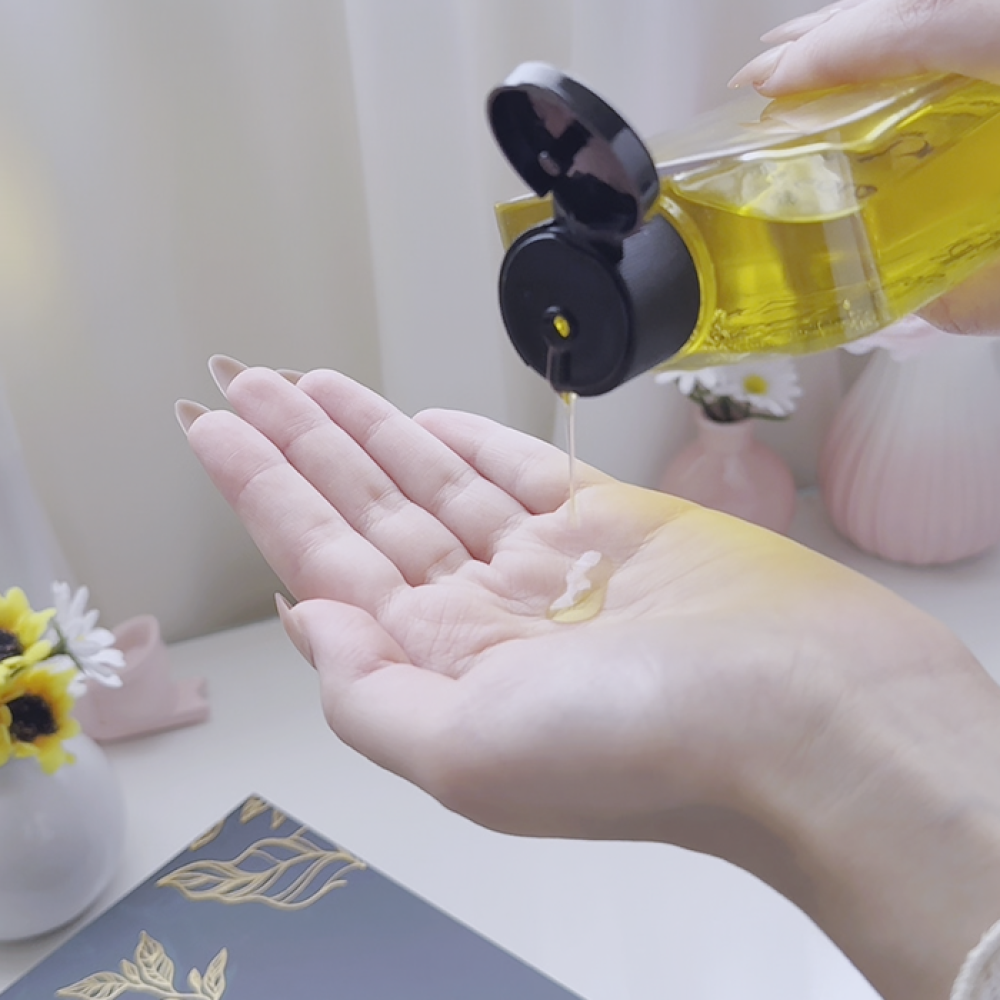 2️⃣ وزّع الزيت على كامل الشعر حتى الأطراف.